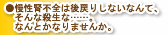 スを使用し、進行抑制効果を検討したところ、慢性糸球体腎炎を原の病気とする慢性腎不全患者12例中6例で、クレアチニンクリアランスでみた進行が統計学的に有意に遅延していたと述べておられます。しかも、有効と判定された患者の血液を詳しく調べると、実態